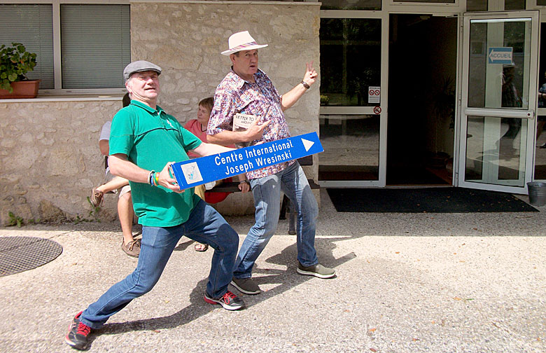 The next day began with an introductory session. Here, people introduced themselves by using an object, such as a photograph, a t-shirt, or even a child in one case, to explain something about him- or herself. Once all been acquainted, everyone had the chance to visit three different areas within the ATD grounds to learn about the history of the movement, and its founder, Joseph Wresinski: Wresinski’s office, including a number of interesting sculptures and artefacts; the main building, home to a scale model of the Emergency Housing camp where ATD started in Noisy-le-Grand in the 1950s; and the Wall of Courage, completed in 2000.
