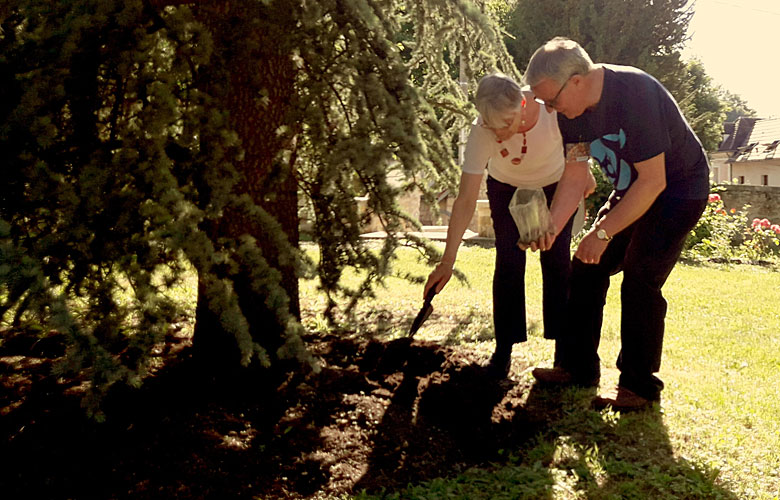 Afterwards, the participants continued to learn more about each other around the Cedar Tree, planted over 20 years ago. To the base of the tree, individuals added earth from places that were very special to them. While doing so, they shared why the earth they brought was important to them.