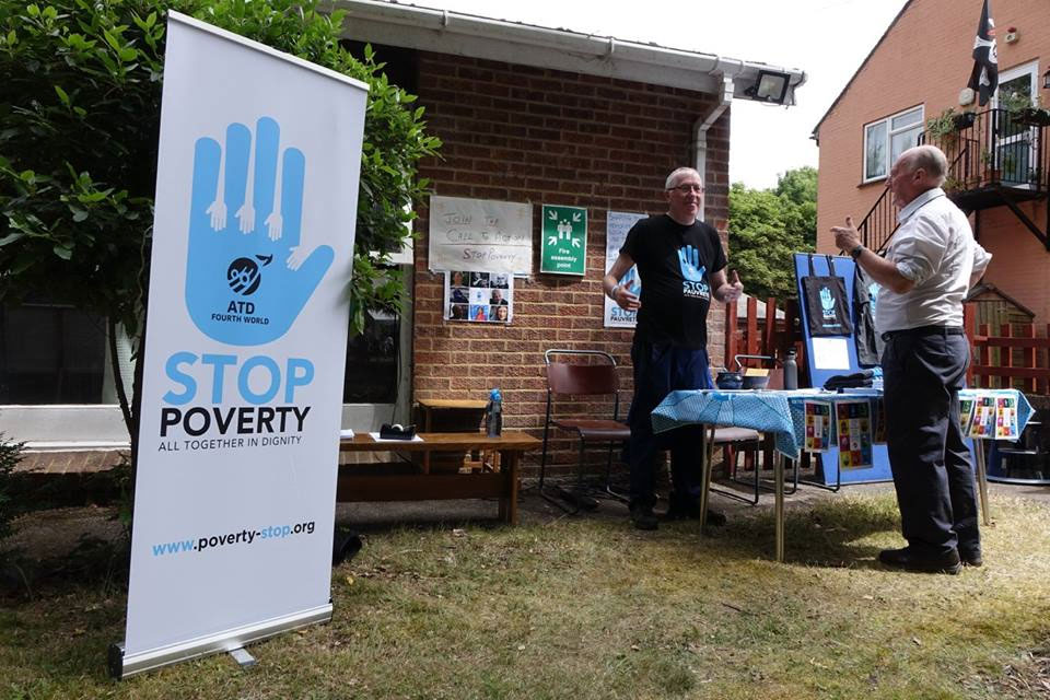 After a period of settling in, the guests were invited to listen to a number of speakers. Mark Hogan introduced the international Stop Poverty Campaign of ATD Fourth World and in particular encouraged people to sign the campaign’s Call-To-Action. He was followed by Brigid Hickey-Williams, a former teacher who worked in Frimhurst in the 1970s and who stressed how listening and learning from the families who visited Frimhurst over the years had influenced her own project in Finchley Farm for socially excluded people. Next, Stephen Baker, who had worked in Frimhurst in the 1970s and 80s, spoke and highlighted the originality, courage, creativity and deep humanity of Mrs Goodman and the other staff who founded the house. He was followed by Seamus Neville, a long-standing activist of ATD UK who was accompanied by his son, Daniel. Seamus stressed how Frimhurst had been a learning tool for him and that it encouraged people who stayed there to pass on their experiences to others. He also read a poem from Daniel describing his childhood memories of Frimhurst. Then, Tammy Mayes, a family member for around 15 years, shared how she was never judged while in Frimhurst and how safe a place it was to bring her children to.