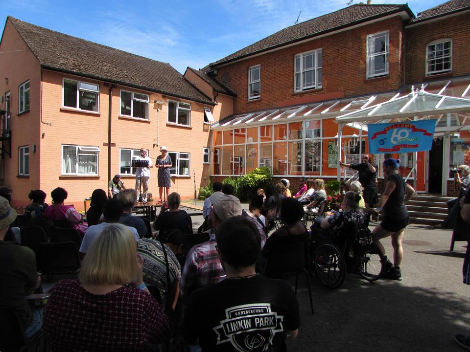 With the formalities over, people were invited to tour the house and grounds to see for themselves a number of very interesting exhibitions which brought great significance to the fun day. These included the ‘Stories of Change’ which presented original photographs and personal profiles of the founding staff, including Mrs Goodman, Ruby Wiltcher (the house cook), Mary Rabagliati (who developed the family house after Mrs Goodman retired), Henri Bossan (legal advocate) and early family members, such as Maria Jones, Mary Totham, Fred and Sue Potter, and Graham and Rita Edwards, among others. The sense of history, courage, dignity and achievement evoked by this particular exhibition was palpable to all who were privileged to view it. A selection of film archives of Frimhurst Family House and a new series of video films, ‘Draw My Life’ celebrating the contribution of Mary Rabagliati were also shown. In addition, a range of creative activities were organised including face-painting for children, the framing of Frimhurst pictures, and the writing and reading of personal messages from family members.