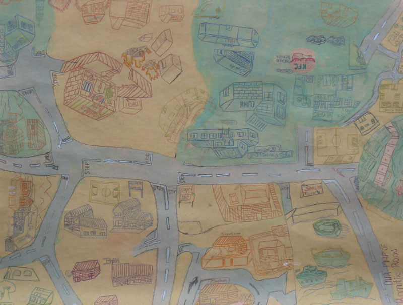 For this, we used a variety of methods, some open-ended, others specifically designed to obtain additional information to some quantitative elements we already had. We kept journals of our observations and conversations with and about children and adolescents. We combined one-on-one interviews with participatory group activities, including art and drama, which enabled young people to express themselves. For example, we asked young people to map their neighbourhood, which allowed us to understand their mental representations of where they lived, to map their support networks (family, circle of friends etc.), or to illustrate their life stories with themselves as the heroes. Other young people, who were struggling to express themselves, were equipped with cameras, so they could to take photographs illustrating their diaries.