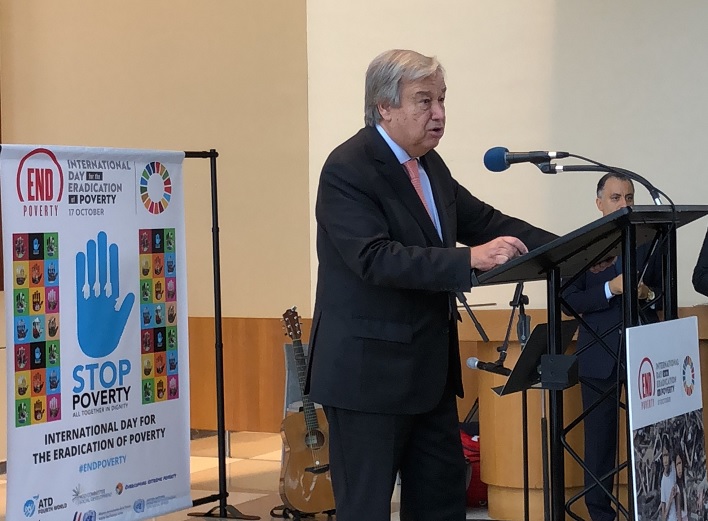 By choosing to deliver his message during the commemoration organized by ATD Fourth World and its UN partners, held this year in the main UN building lobby, Guterres put the event in the spotlight.