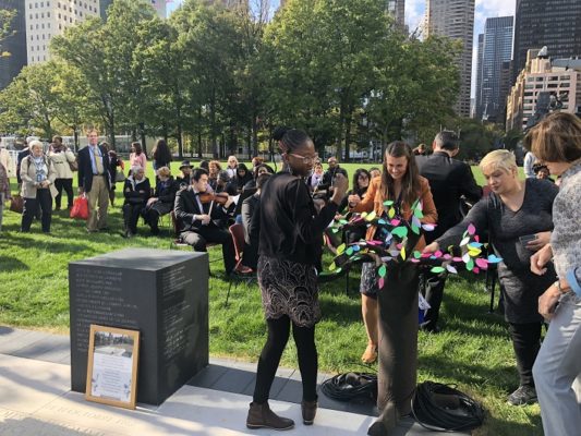 Following the ceremony, commemoration participants gathered around the Esplanade in the UN garden for dance performances and the reading of a poem by an ATD member who had died recently, accompanied by the UN orchestra.
